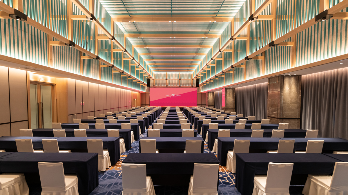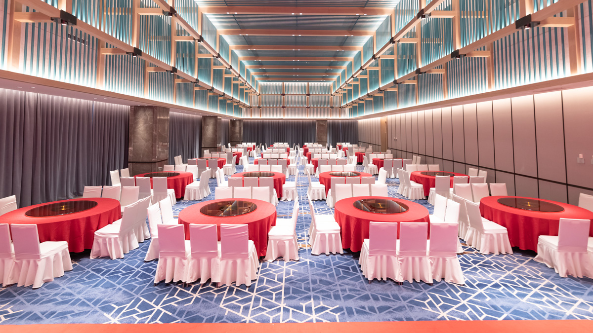 “禧悦”多功能宴会厅设计概念为“叠叠高升、步步登高”。采用阵列式设计语言以多层条形构架组合装饰天花,于规整中变化着丰富层次,配合灵动多变的灯光配置,打造理性思维与感性艺术的结合。另外酒店还设有可灵活组合空间面积的大中小型多功能厅数个,以满足不同需求。